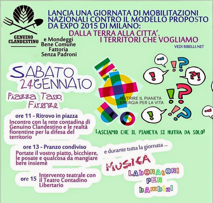 Condividiamo l’appuntamento lanciato dalla rete di Genuino Clandestino insieme a Mondeggi Bene Comune per la giornata di Sabato 24 gennaio 2015 in Piazza Tasso (Firenze).